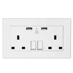iMountek UK Wall Outlet Dual Wall Plug Socket Duplex 2.1A USB Wall Charger with Plug Switch Light Indicator
