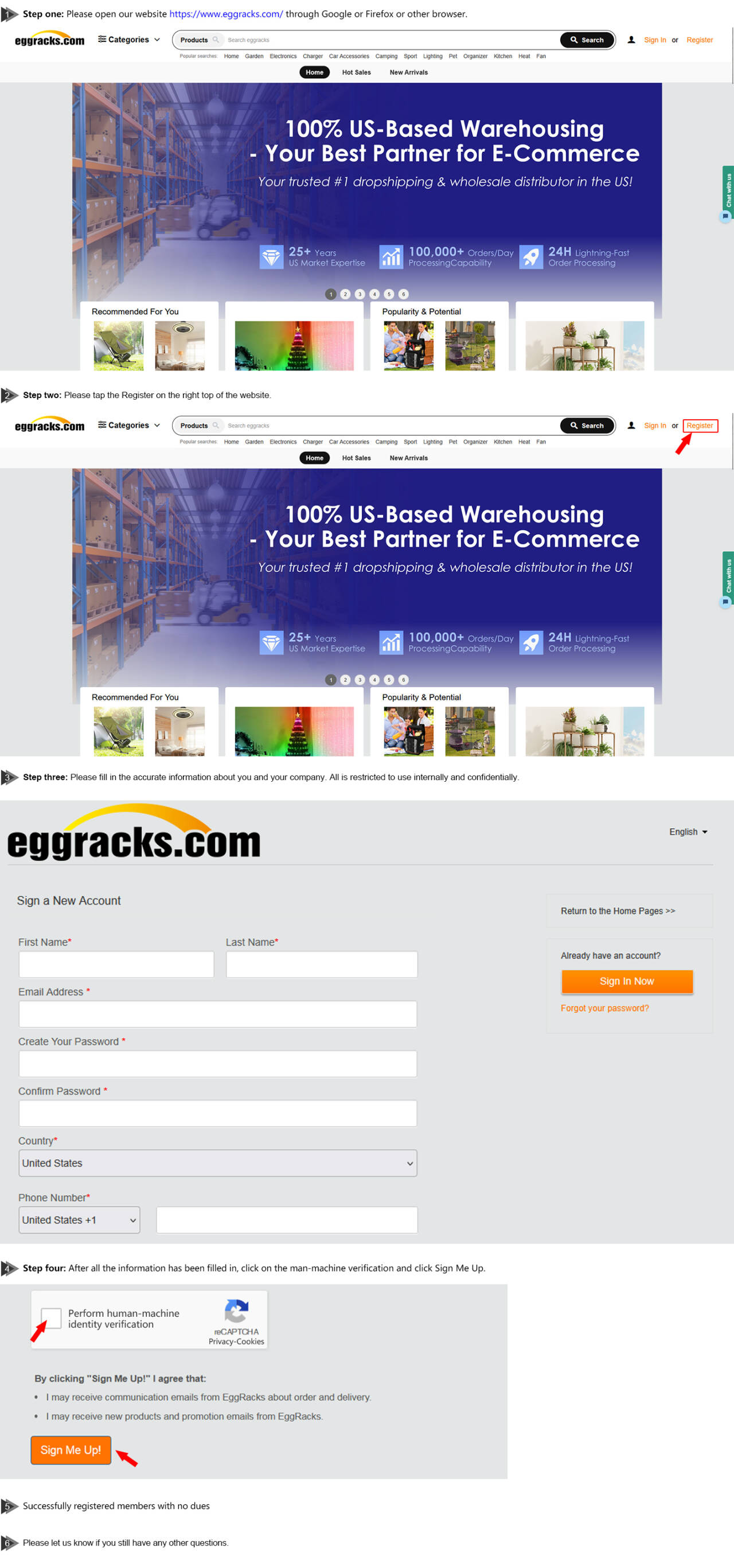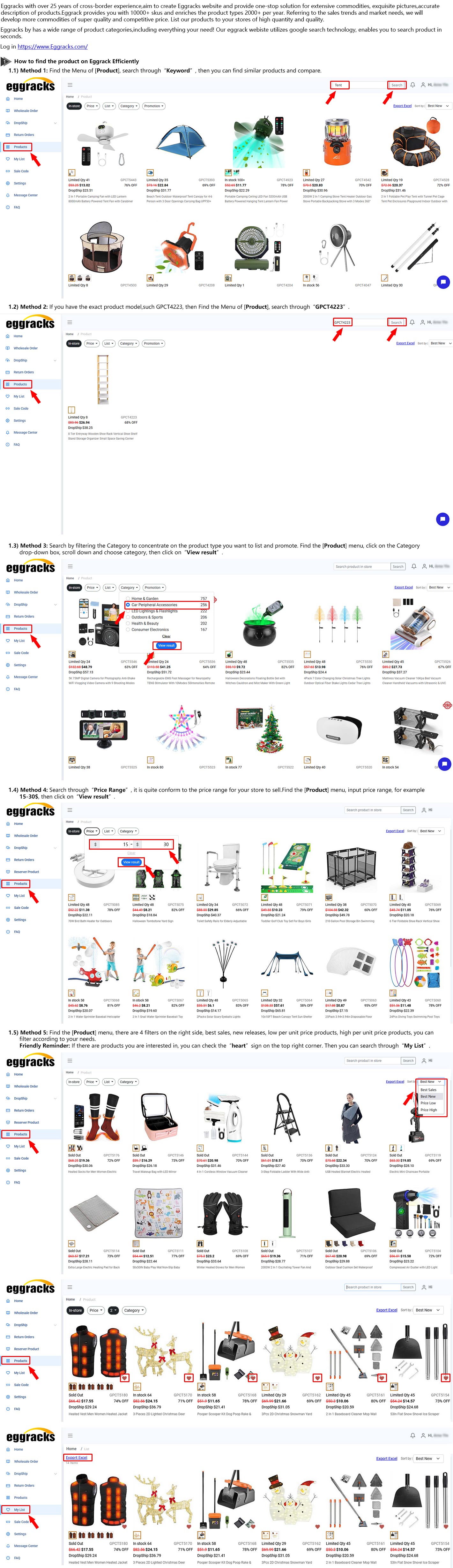 Founded in 2001, Eggracks specializes in the production, distribution, and supply of consumer electronics, home goods, outdoor fitness equipment, lighting, pet supplies, apparel, and more. We provide comprehensive wholesale and dropshipping solutions, delivering high-quality products at competitive prices with a strong commitment to superior service.